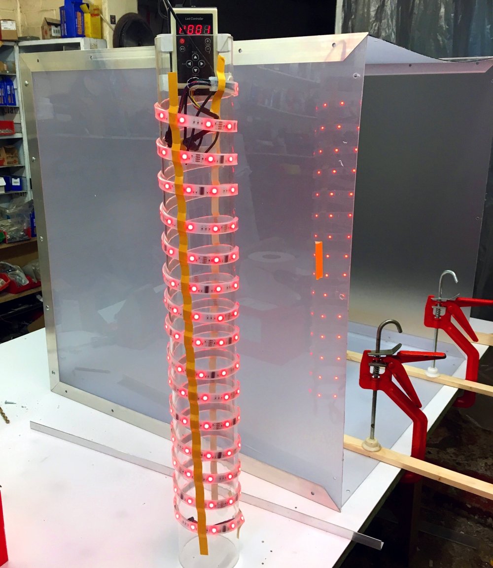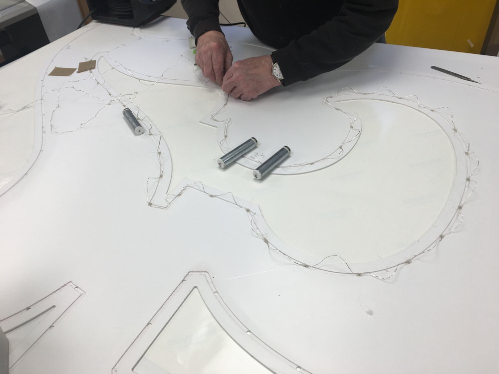Large LED illuminated prop to be spun by the performers feet. It needed to be light, strong and have its own power supply.