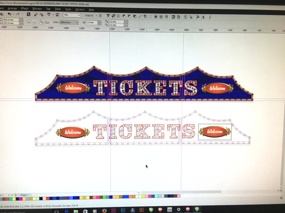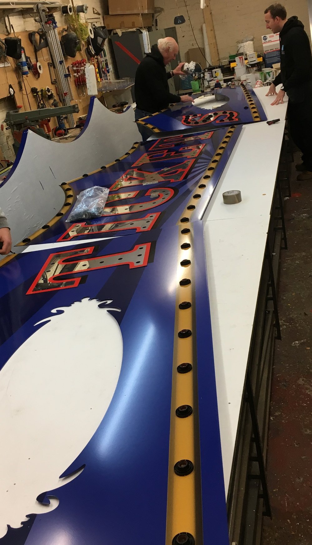 Large LED illuminated sign to celebrate 250 years of the Circus. The sign needed to be strong and light weight and hook onto rigging. The sign was also powered by batteries to for safety.