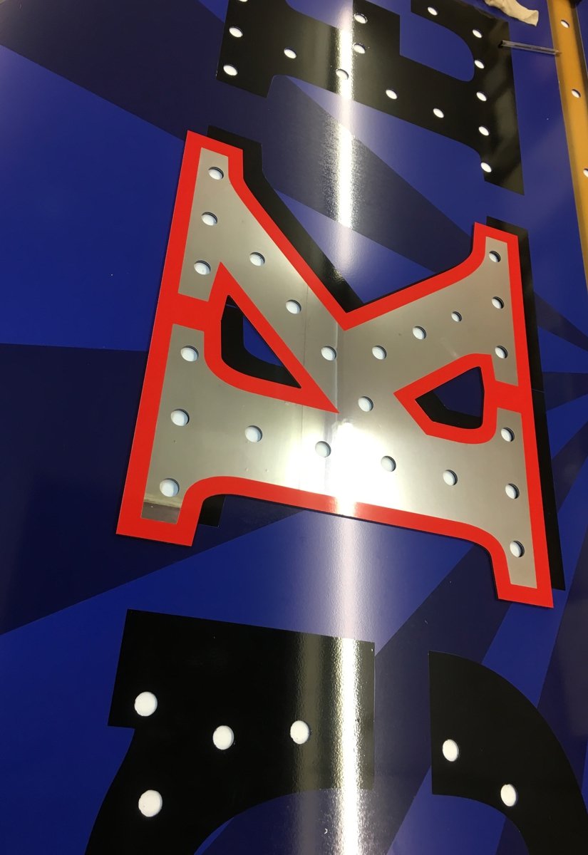 Additional blue vinyl star burst and trims. Letter holes exact fit to main panels.