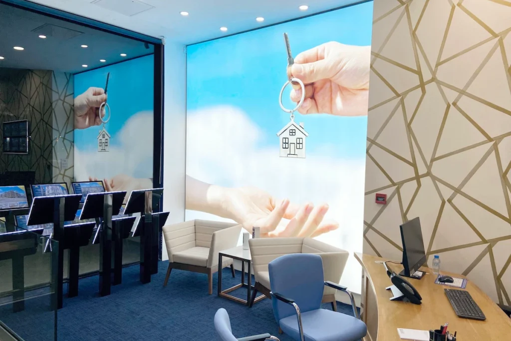 A Complete back wall to this shop was used to display a prominent colourful message.