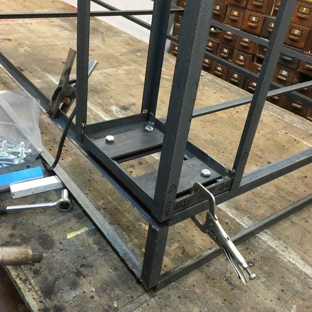 The fasse floor installed by the shop fitter conceals the spreader plates that the structure is bolted to.